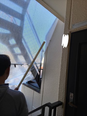 廊下に雨が入り込んでくるのをご自分でシートかけて塞いでいたのですが、