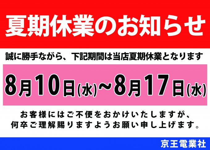 【夏期休業のお知らせ】