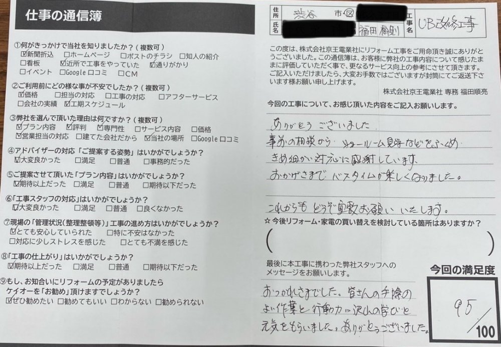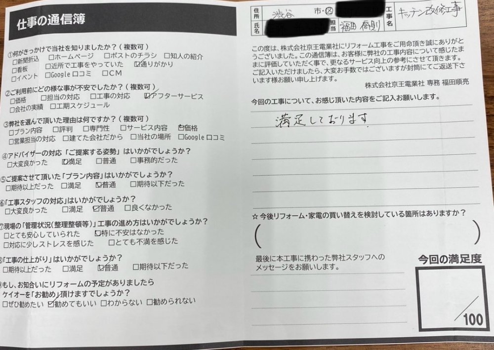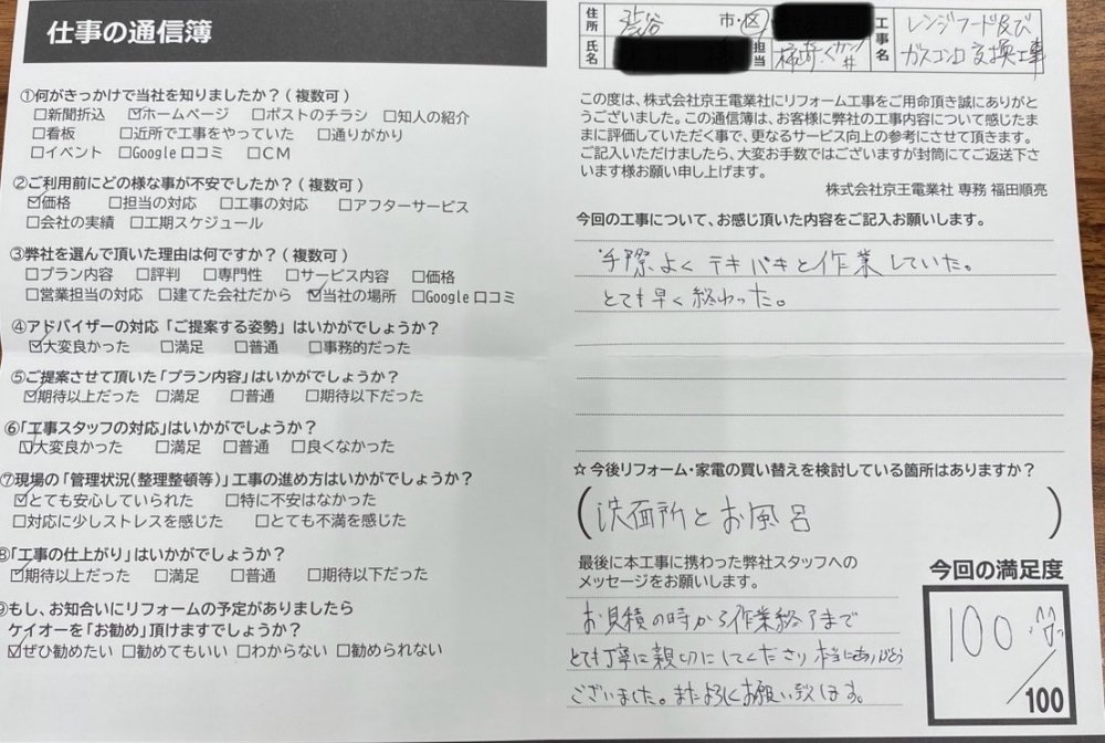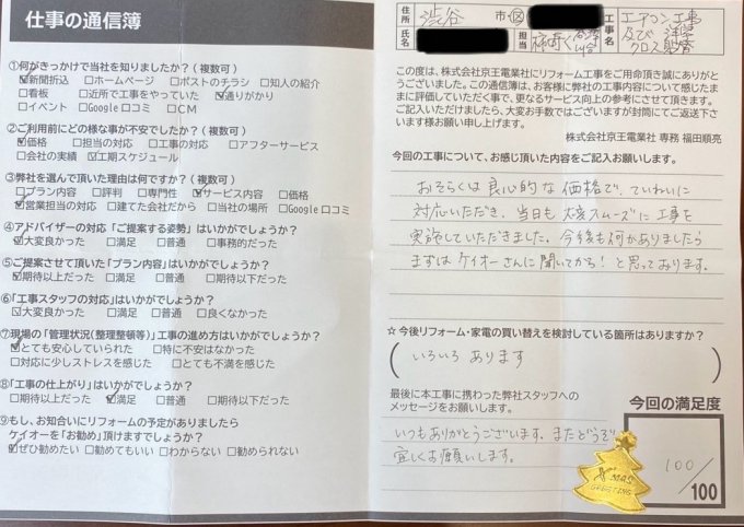 おそらく良心的な価格で丁寧に対応いただき、当日も大変スムーズに工事を実施していただきました。今後も何かありましたらまずはケーオーさんに聞いてから!と思っております。