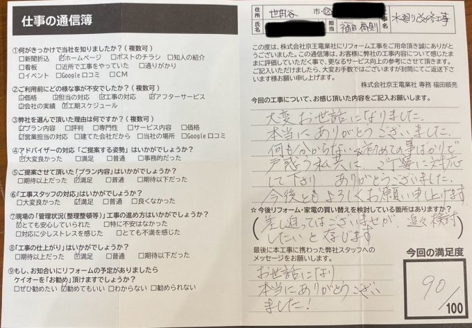 前回も今回も、鉄筋の家でやりにくい事もあったことと思いますが、色々考えてい頂き丁寧にリフォームしてい戴き感謝しております。