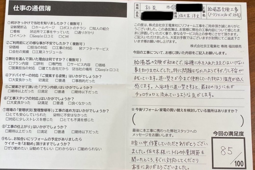 特に問題はなかったようですが、少し不安が残っています。追い炊きが今まで使用していた
