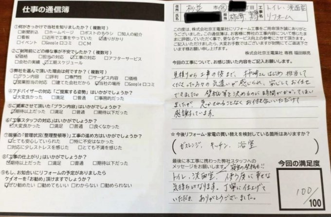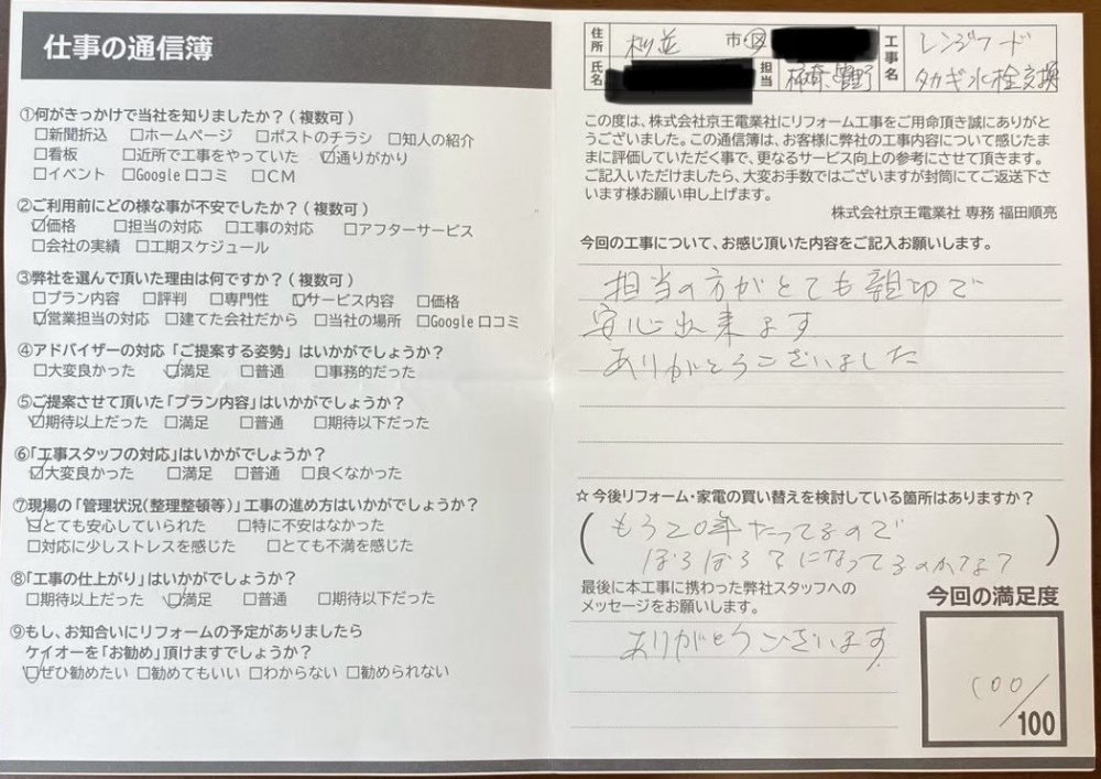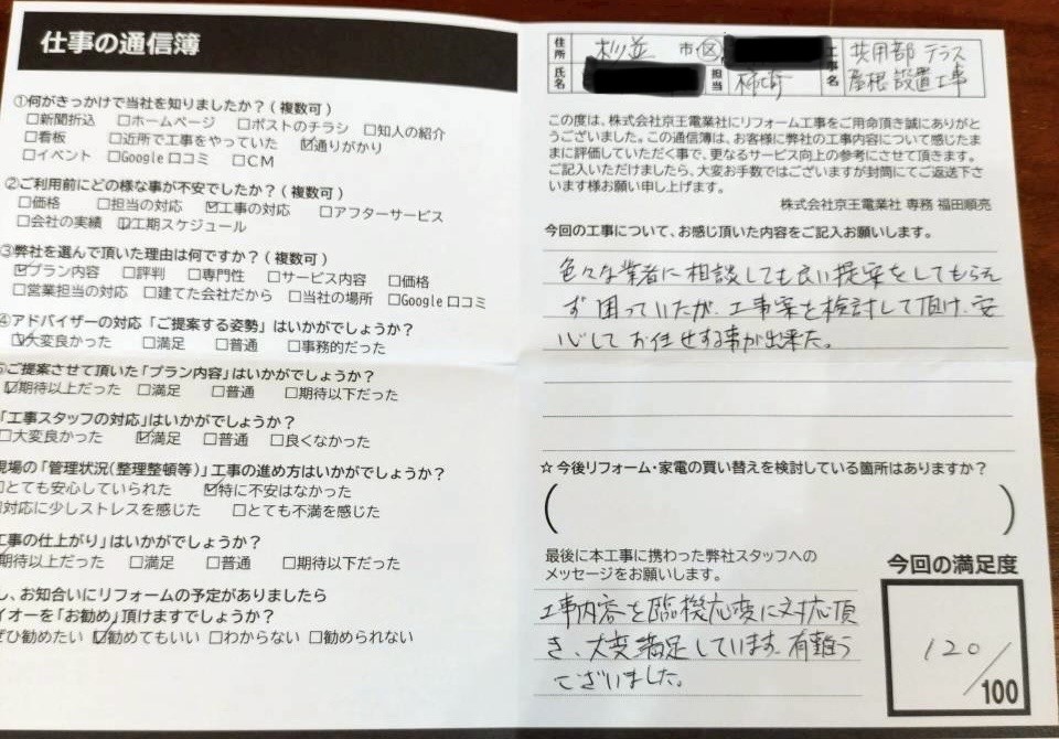 工事内容を臨機応変に対応頂き大変満足しています。有難うございました。